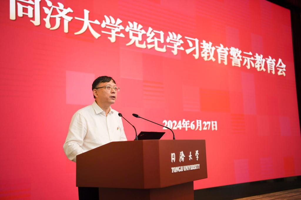 方守恩在讲话中指出,习近平总书记关于全面加强党的纪律建设的重要论述,为我们加强党的纪律建设、推动全面从严治党向纵深发展指明了方向、提供了根本遵循。一要深入学习领会习近平总书记关于“加强纪律建设是全面从严治党的治本之策”的重要论断,深入把握这一重要论断的历史逻辑、理论逻辑、实践逻辑,准确把握加强纪律建设的重大意义,把党纪学习教育引向深入,以严明的纪律推动学校全面从严治党向纵深发展。各基层党委要深入开展警示教育,重点要做好新提拔干部、年轻干部和关键岗位干部的警示教育工作,教育引导党员干部在对照剖析、反躬自省中受到警醒、汲取教训。二要进一步压实责任,抓实抓细党纪学习教育各项举措,查找党纪学习教育中存在的薄弱环节,有针对性地查漏补缺。“一把手”要担当第一责任人的责任,班子成员要履行好“一岗双责”,各级党组织要强化“全链条”责任,打通责任落实的“最后一公里”。 每个党员干部要在警示教育中知敬畏、存戒惧、守底线,强化纪律规矩的学习,保持如临如履的谨慎,共同营造风清气正的政治生态。三要以党纪学习教育为新起点,自觉对照检视,切实提升党员干部的廉洁自律意识,从根本上增强政治定力、纪律定力、道德定力、抵腐定力。同时,要激发广大党员干部清而有为、奋发作为,以昂扬的精气神干事创业、建功立业,跑好手中的“接力棒”,切实提升现代大学治理能力和治理水平,为全面开启中国特色世界一流大学高质量发展新征程贡献力量。