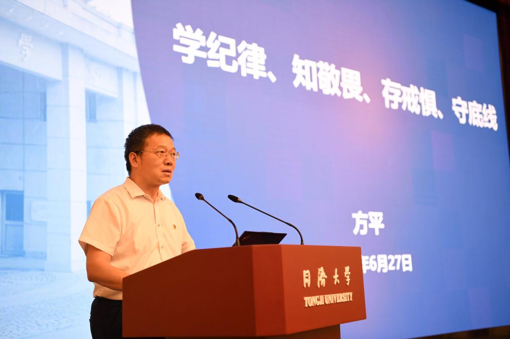 方平指出,要清醒认识当前学校纪律建设面临的形势和任务,扎实开展党纪学习教育,以案为鉴、警钟长鸣,常修为政之德,常思贪欲之害,常怀律己之心,时时处处自重自省自警自励,做到慎权、慎独、慎微、慎初。要以更高的标准、更严的要求、更实的举措,坚决整治不正之风和腐败问题,全面加强师德师风、医德医风建设,推动形成优良的教风、学风、校风,营造愈加清朗的校园政治生态和良好的教书育人环境。