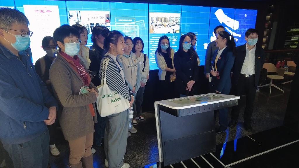 在讲解员的引导下,师生们首先沿滨江栈桥参观了杨浦滨江公共空间杨树浦水厂滨江段,切身感受上海老工业区由“工业锈带”变身 “生活秀带”的发展历程,以及杨浦滨江在转型开发过程中贯彻“人民城市”重要理念的生动实践。随后,在杨浦滨江人民城市建设规划展示馆,师生们还通过四排电子书架、多媒体互动、沙盘模型、影音投影等多种方式,全方位、近距离地了解杨浦滨江公共空间的总体规划、发展历程和建设成果。
