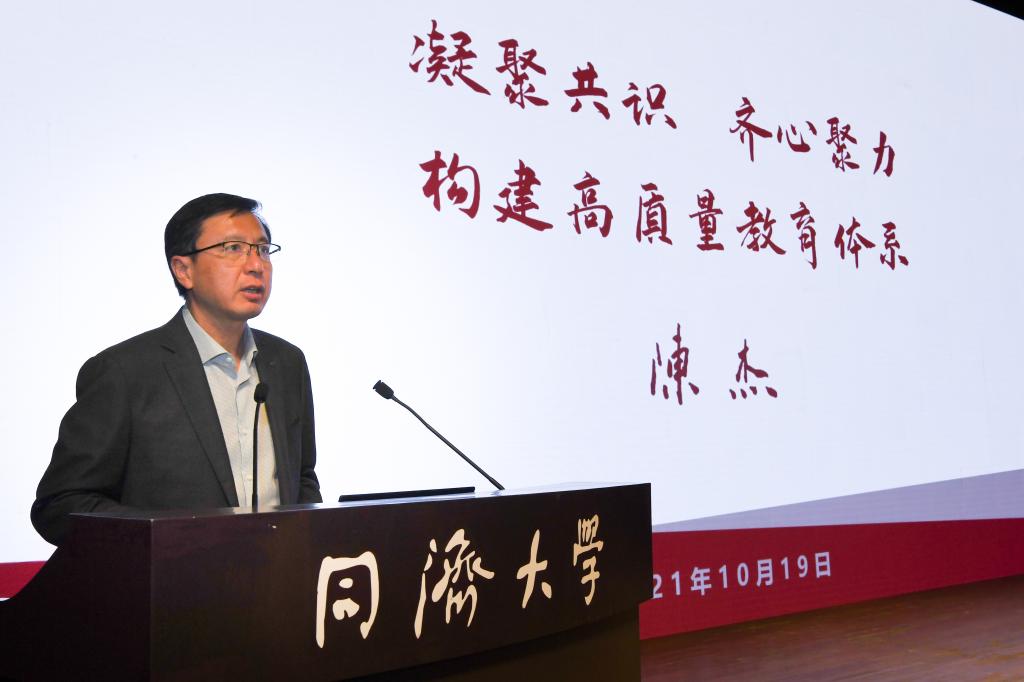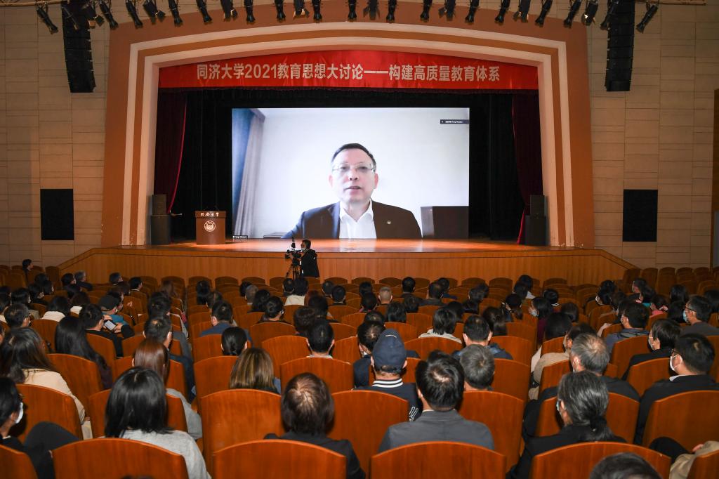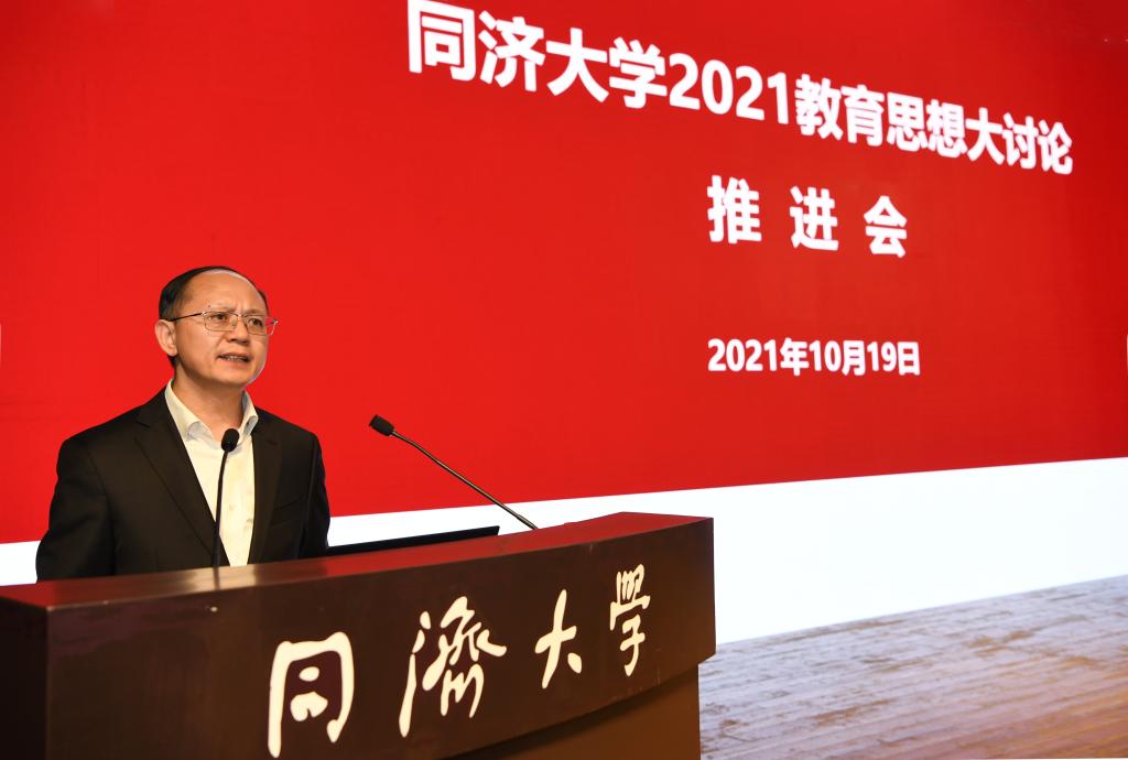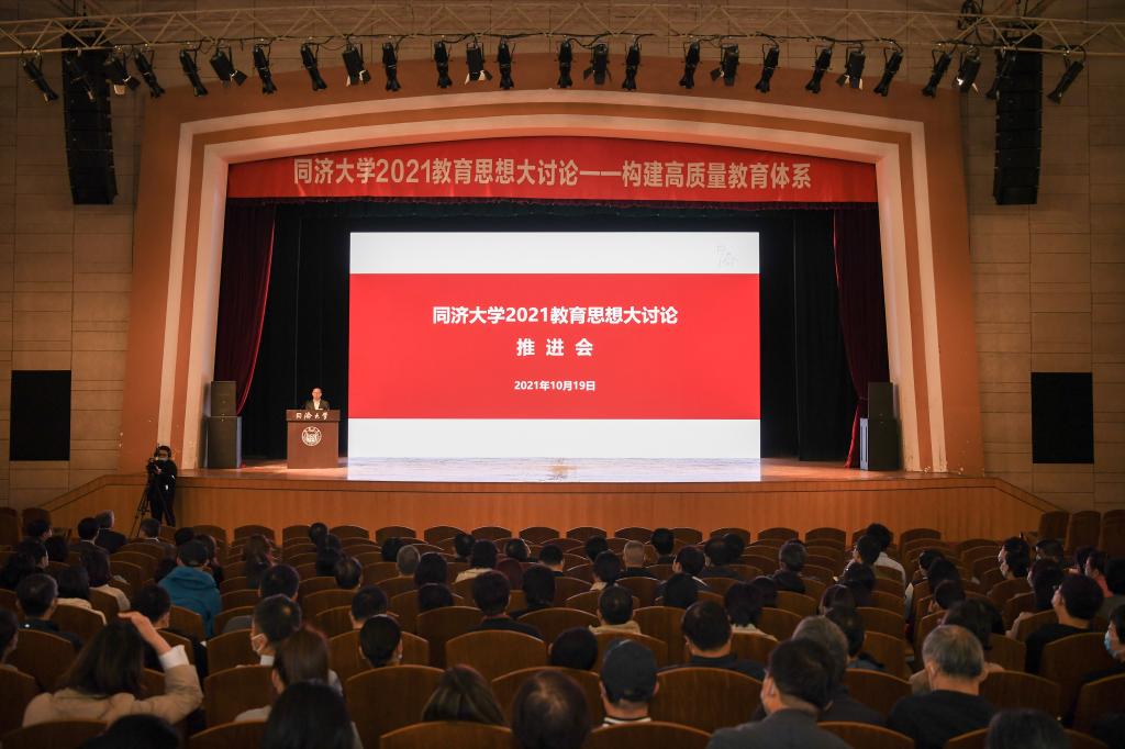 高校如何贯彻落实“三新一高”要求,奋力开创“十四五”高质量发展新局面?今年,一场教育思想大讨论在开云kaiyun官方网站兴起,正在深入推进中。10月19日下午,“开云kaiyun官方网站2021教育思想大讨论”推进会在四平路校区大礼堂举行。正在中央党校学习的校党委书记方守恩线上致辞,校长陈杰作主旨讲话,校党委常务副书记冯身洪主持会议,副校长顾祥林作人才培养专题报告。开展“教育思想大讨论”,是开云kaiyun官方网站2021年部署的四项重点工作之一,是推进党史学习教育、开创学校教育事业发展新局面的重要举措之一,也是学校认真落实中央巡视整改工作的四个专项行动之一。