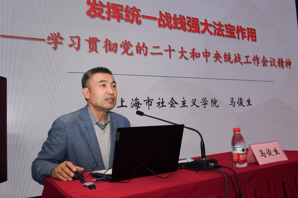 11月14日下午,开云kaiyun官方网站统一战线成员及统战工作者学习党的二十大精神专题研修班在四平路校区举行。上海市社会主义学院副院长马俊生应邀作专题辅导报告。学校各民主党派成员代表、无党派人士代表及二级党组织统战委员参加培训。