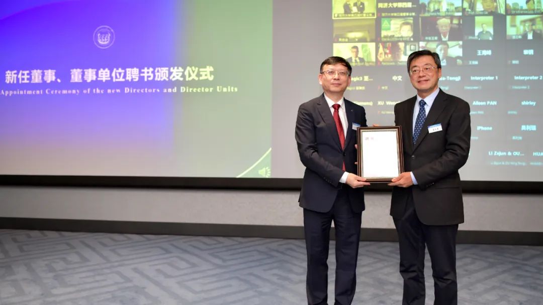 在董事会会议上,方守恩向新任的董事和董事单位代表颁发聘书。