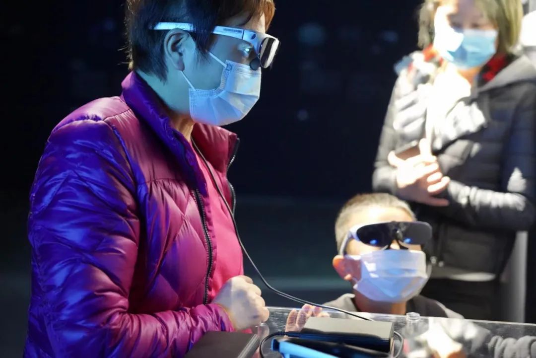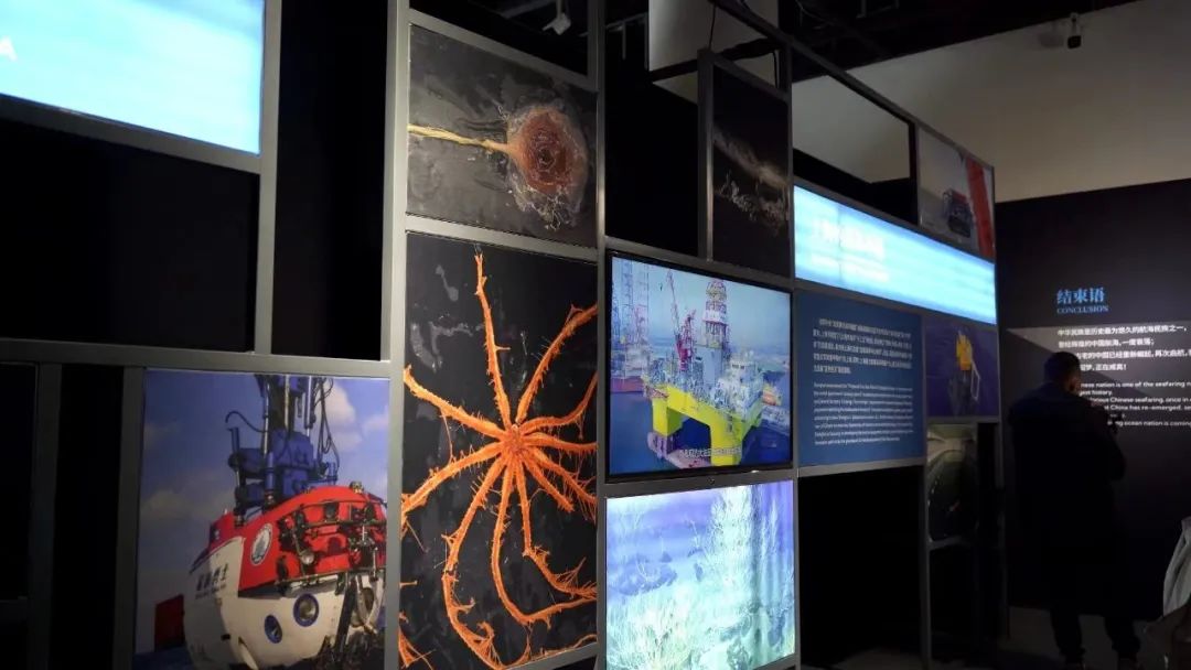 走进展厅,暗色基调扑面而来,仿佛让人置身于千米之下的深海之中,奇幻的影音声光效果尽显深海奇观。感受着“五彩斑斓的黑”,像是徜徉在奇幻的深海里,“解锁”着蔚蓝深处的神秘莫测,一路探寻的海底万象,能直观感受人类征服海洋的雄心与信心。