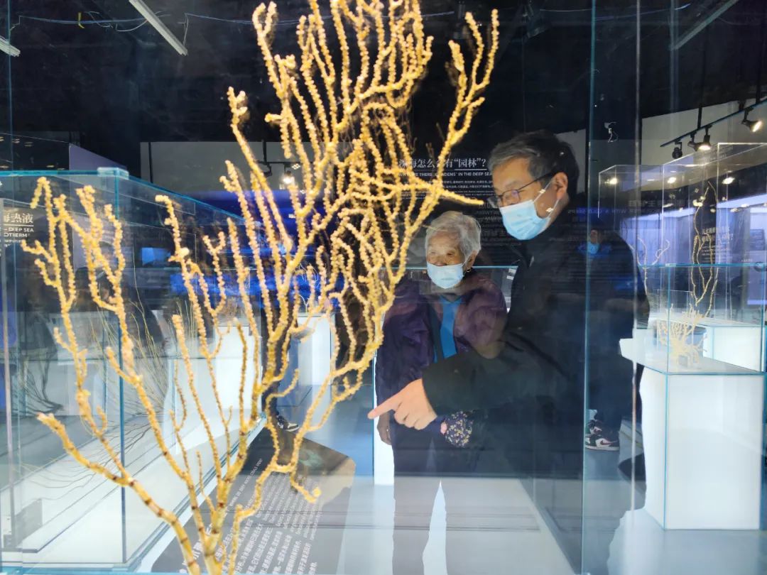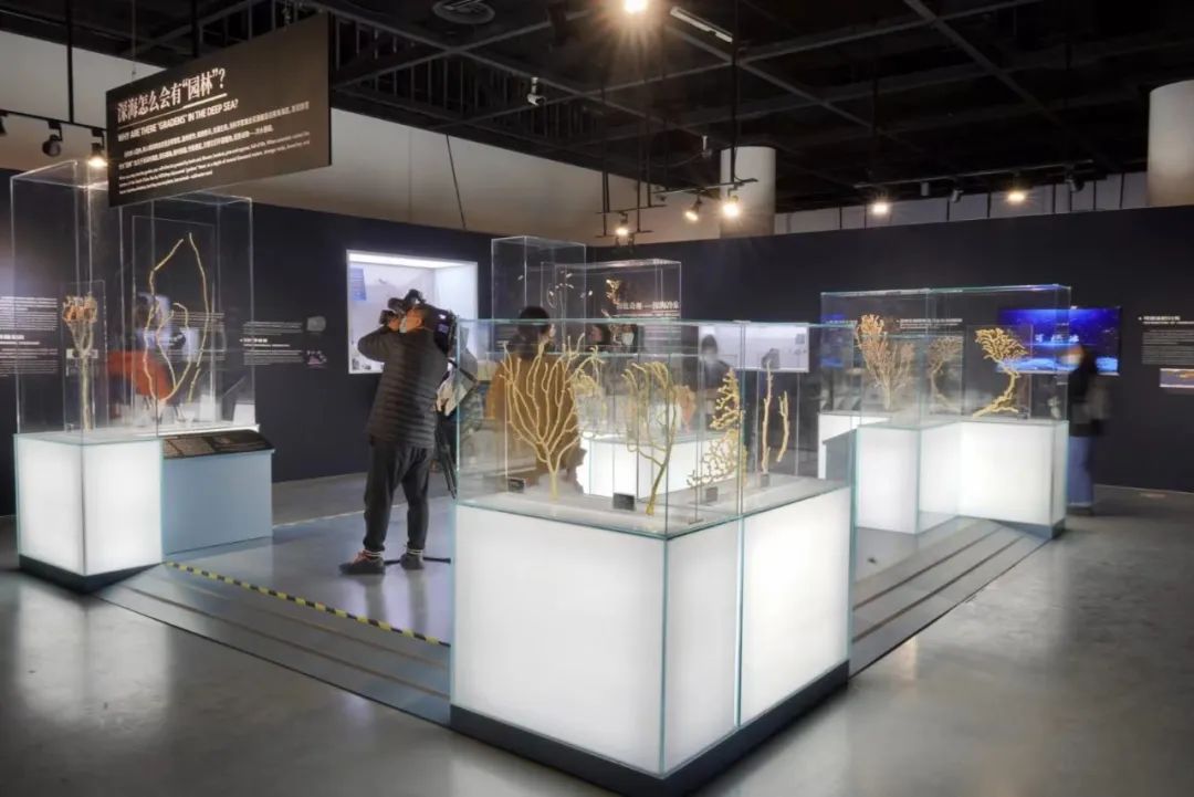 在这里,你不仅能看到目前世界上最大的冷水珊瑚林复原场景,还能近距离欣赏数十件来自千米深海的珍稀标本。据了解,相关展品和设计都由汪品先院士团队精心挑选和把关,展览筹备时间历时一年。