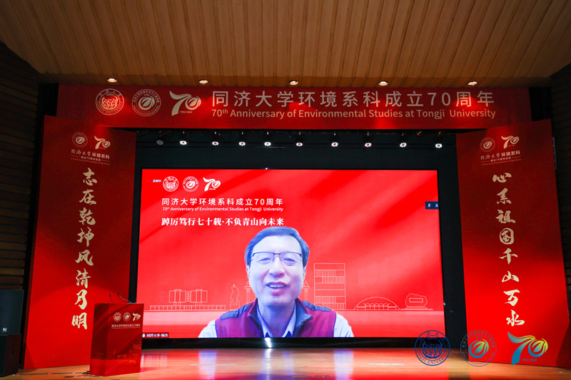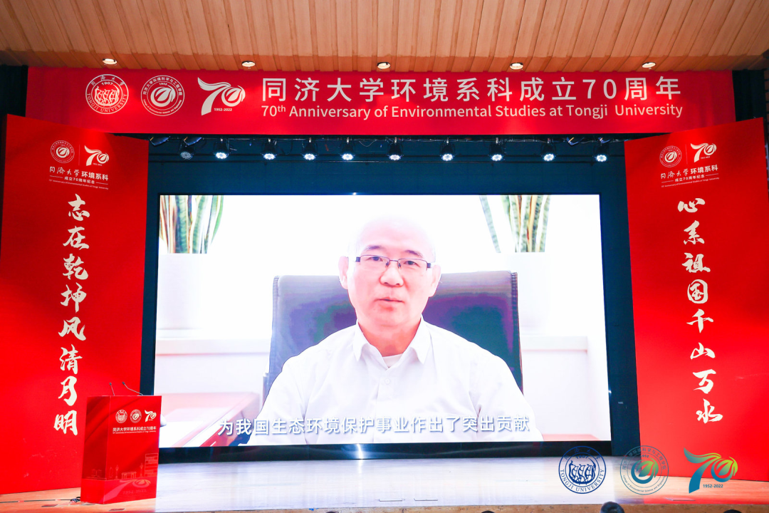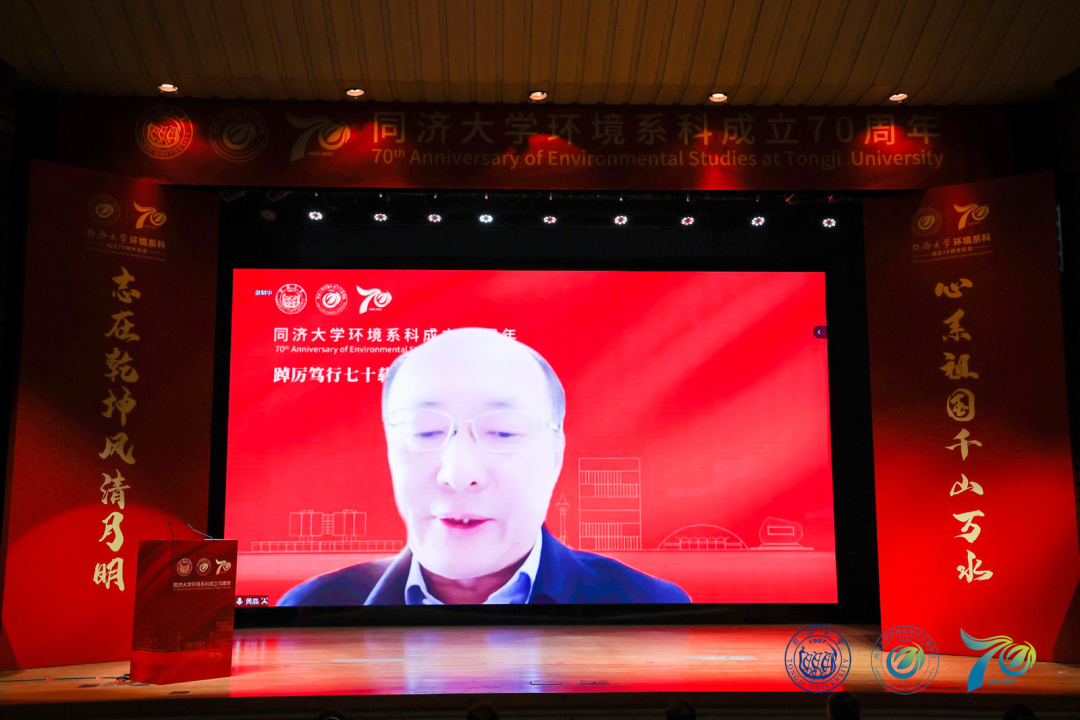 多所高校环境学院院长作为兄弟学院代表分别致辞。此次庆典,学院还收到了众多兄弟高校、合作伙伴、校友等发来的祝贺视频、贺信,其中包括1956届校友、86岁高龄的钱易院士亲笔题写的贺词。