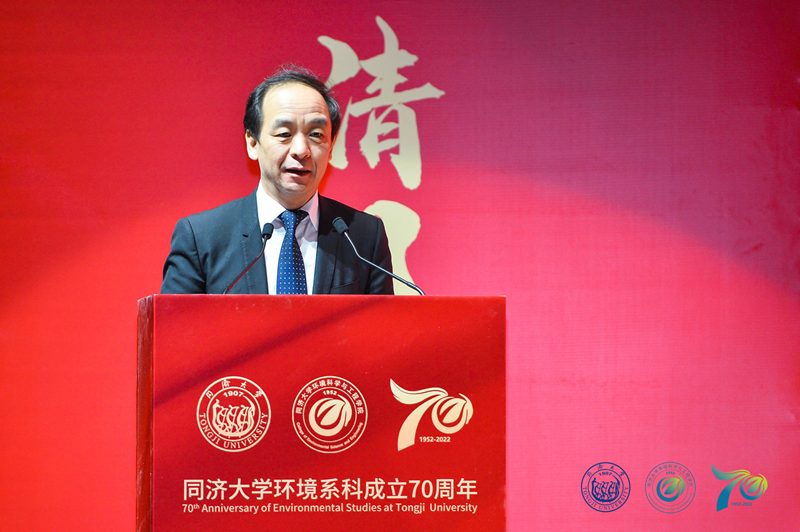 曲久辉院士、贺克斌院士、侯立安院士、段宁院士、刘文清院士、张远航院士、杨志峰院士、朱利中院士、贺泓院士、吴丰昌院士、徐祖信院士、王桥院士、任洪强院士、朱彤院士、王双飞院士、冯起院士、吴明红院士、高翔院士,生态环境部太湖流域东海海域监督管理局局长霍传林、住房和城乡建设部标准定额司原副司长郭理桥、住房和城乡建设部村镇建设司副司长牛璋彬、生态环境部太湖流域东海海域监督管理局副局长金左文、上海市水务局副局长周建国、上海市绿化和市容管理局副局长唐家富、海南省水务厅原副厅长沈仲韬、上海市科学技术委员会巡视员郑广宏、上海市生态环境局巡视员屈计宁,开云kaiyun官方网站常务副校长吕培明,全国近60所兄弟高校环境学院负责人,部分杰出校友、合作伙伴、学院师生代表参加了庆典大会。大会由开云kaiyun官方网站环境科学与工程学院党委书记徐斌主持。
