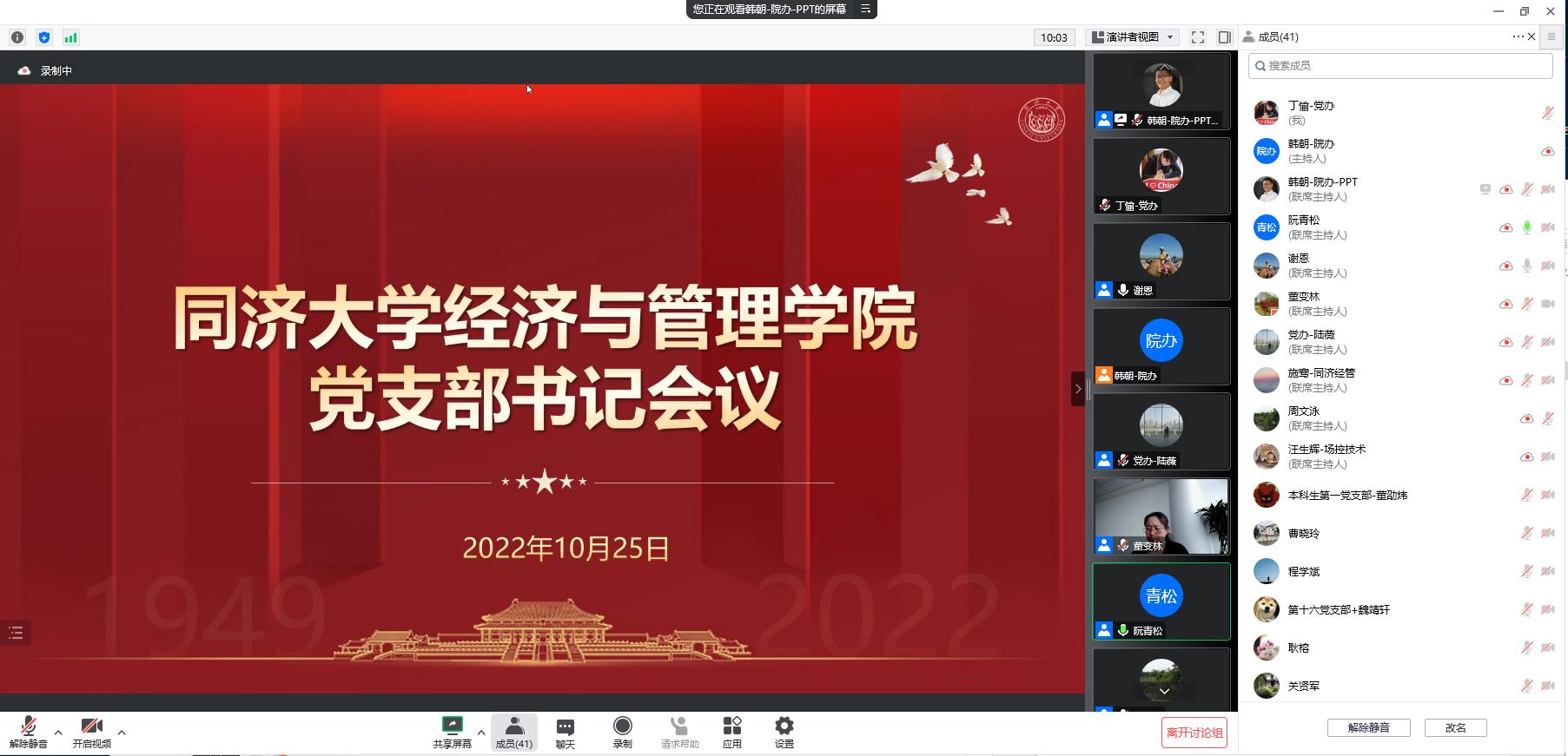 工商管理党支部联合研究生第十一党支部、研究生第十九党支部召开“喜迎二十大 师生携手同行共育”组织生活学习会。