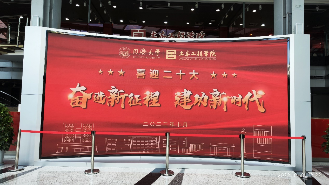 大会召开之前,土木工程学院党委即组织在学院公众号推送、学院大厅宣传栏、师生活动、院系各层级会议上增加党的二十大的元素,营造喜迎二十大的氛围。大会召开后,第一时间在学院LED大屏滚动播放二十大报告“一图快览”等信息,并第一时间在教职工微信工作群、教职工党员微信群、学生微信群等转发央媒的相关正式会议信息,迅速实现二十大报告要点的师生全覆盖宣传。
