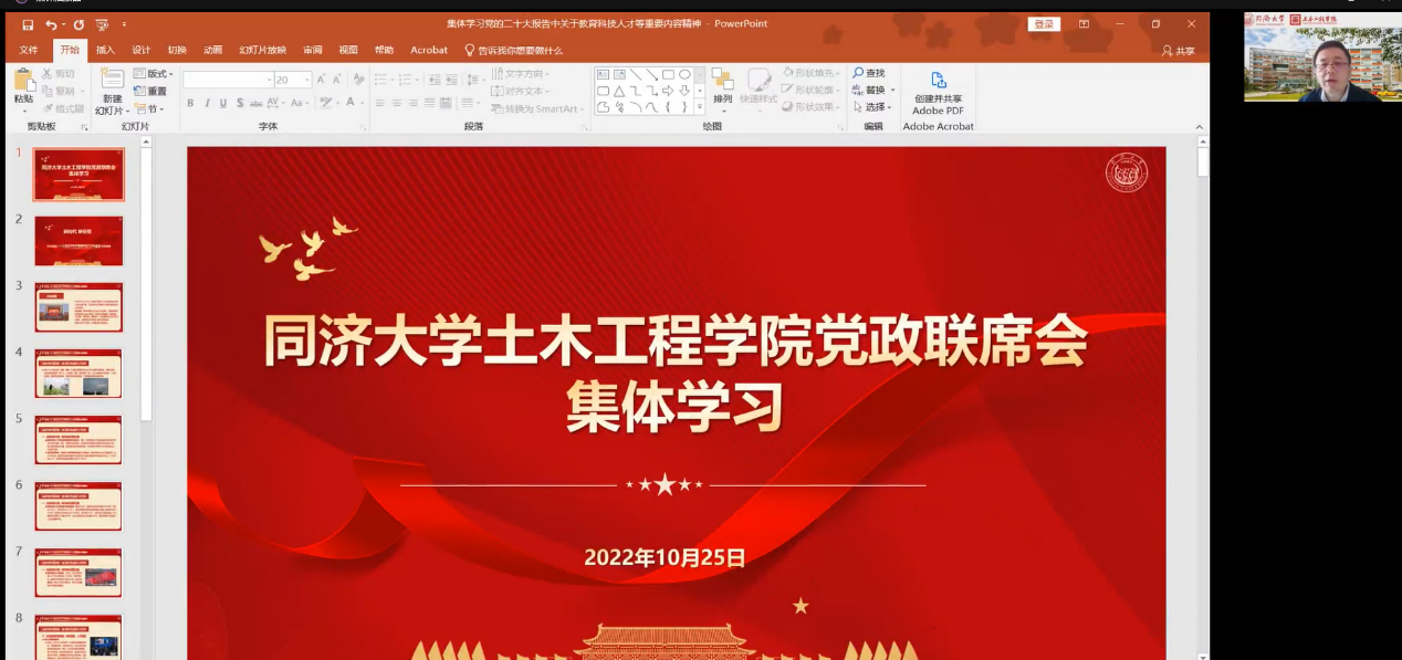 学院党委将党的二十大精神学习作为近期集体学习的首要内容。10月18日,学院党委会通过收集、汇总主流媒体的信息资料,集体学习党的二十大精神;10月25日,学院党政联席会集体学习党的二十大报告中关于教育科技人才等重要内容精神;各系党总支、直属支部和各党支部也在第一时间,组织集体学习二十大报告原文,高位推进对二十大精神的深入学习和融会贯通。