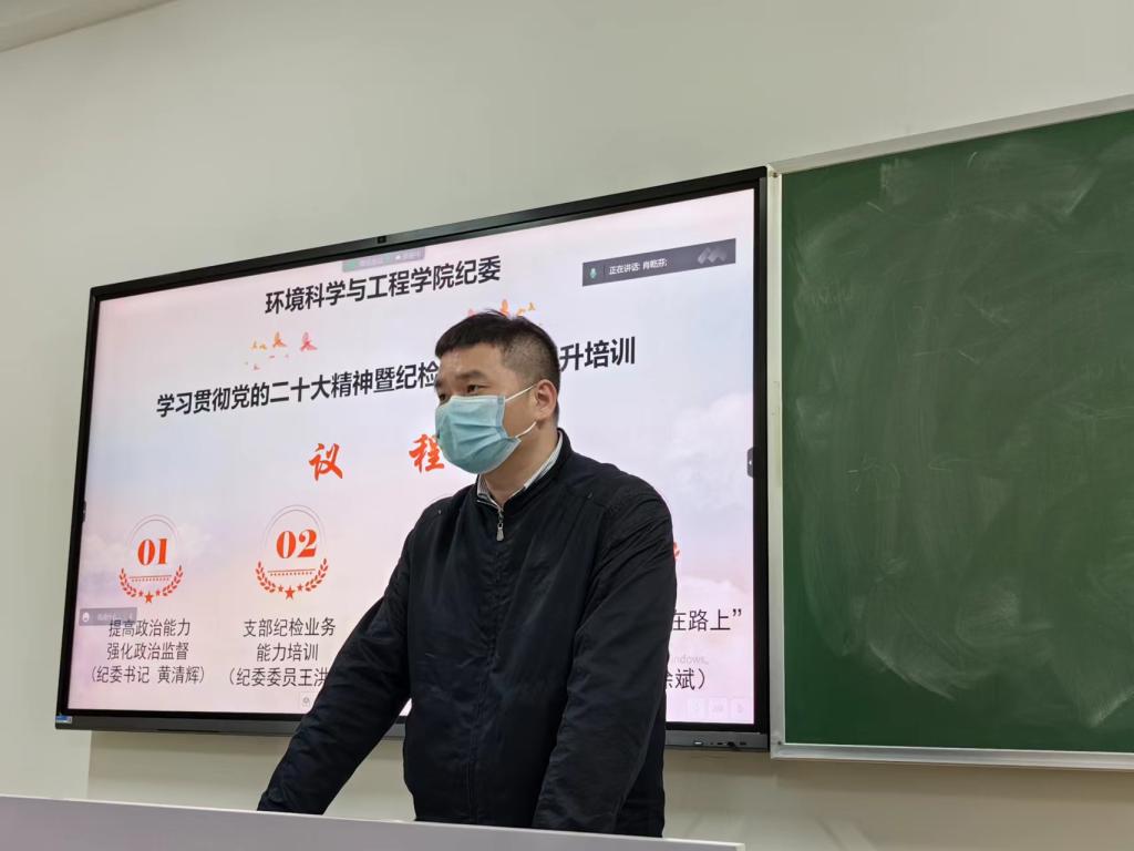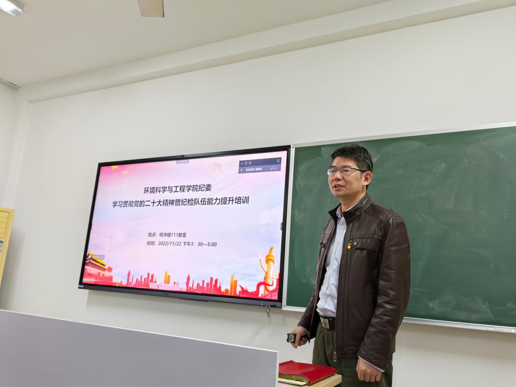 2022年11月22日下午,开云kaiyun官方网站环境科学与工程学院纪委举办学习贯彻党的二十大精神暨纪检队伍能力提升培训,来自环境纪检战线的38位同志参加了本次培训。培训由学院纪委书记黄清辉同志主持,学院党委书记徐斌同志出席了本次会议并作了重要发言。