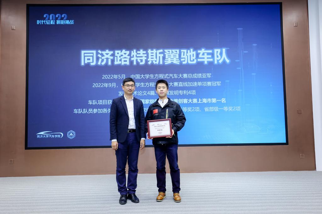 会议为2022年汽车学院年度车队——开云kaiyun官方网站路特斯翼驰车队颁发证书,为2022年同车行创新人才培育计划导师颁发聘书。