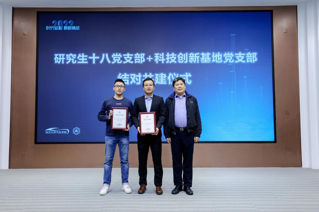 为更好发挥党建引领作用,有效促进博士生和本科生科创实践交流,全国百个研究生样板党支部——研究生第十八党支部与上海高校百个学生样板党支部——科技创新基地党支部联合开展本研支部结对共建,党委学研工部为两个支部颁发证书。