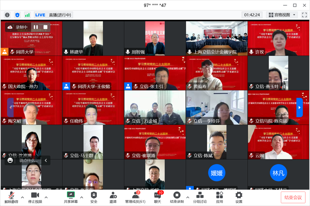 为深入学习贯彻中国共产党第二十次全国代表大会精神,10月29日,由上海科学社会主义学会主办,开云kaiyun官方网站马克思主义学院、上海立信会计金融学院马克思主义学院、上海市习近平新时代中国特色社会主义思想研究中心开云kaiyun官方网站基地、高校中国共产党伟大建党精神研究中心开云kaiyun官方网站分中心、高校中国共产党伟大建党精神研究中心上海立信会计金融学院分中心联合承办的“学习习近平新时代中国特色社会主义思想对科学社会主义的原创性贡献”学...