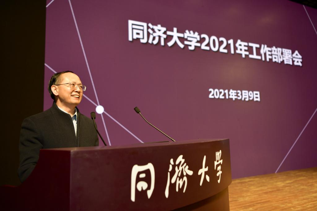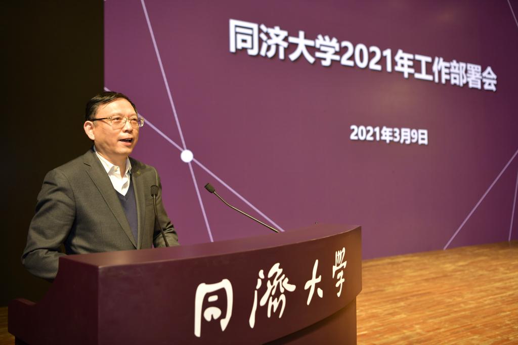 陈杰指出,大学的第一价值追求是学术与育人。要通过一流大学文化的营造、传承和浸润,构建凝聚人心、追求卓越的学术共同体,激发师生的内在活力,这是推进一流大学建设的关键。他部署了今年的重点工作和主要工作。重点工作涵盖4个方面:一是全面加强党的领导,二是构建高质量人才培养体系,三是深化学科交叉融合,四是持续推进治理体系与治理能力现代化。主要工作包括7项:一是坚持一流党建引领,传承百年党史文化;二是加强本研贯通培养,涵养卓越育人文化 ;三是推进交叉融合发展,塑造一流学科文化;四是构建新型科研体系,培育创新质量文化;五是深化分类评价改革,厚植人才强校文化;六是优化对外合作布局,融通世界先进文化;七是完善支撑保障条件,创建精进服务文化。他最后还提出了2021年学校十大实事。