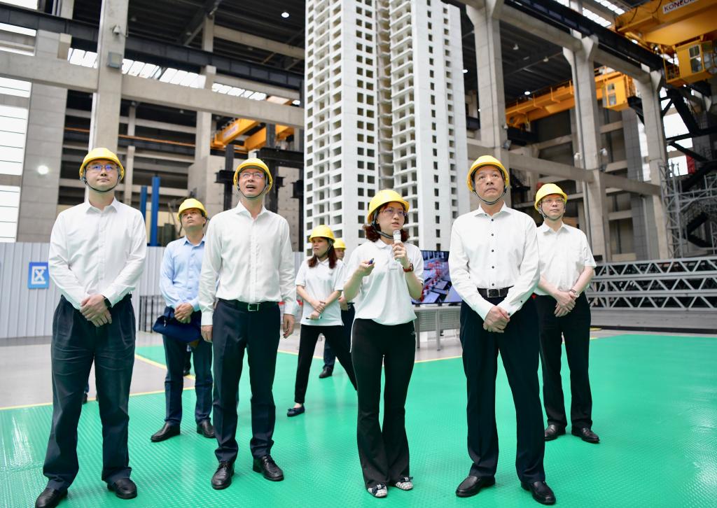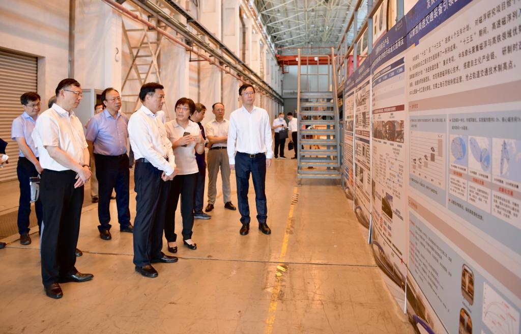 座谈会前,胡文容一行前往新能源汽车工程中心,听取了汽车学院负责人关于氢能燃料电池和智能网联汽车研究成果的介绍,参观了智能网联汽车测评基地;前往土木工程防灾国家重点实验室多功能振动实验中心,参观了世界最大规模的多功能振动台地震模拟系统,听取了土木工程学院负责人关于该系统服务国内外重大工程的情况介绍;前往国家磁浮工程技术研究中心,参观了高速磁浮工程试验线,听取了中心负责人关于国产高速磁浮列车研制的情况介绍,并试乘了正在试验中的磁浮列车。方守恩、陈杰和校党委常务副书记冯身洪陪同参观。