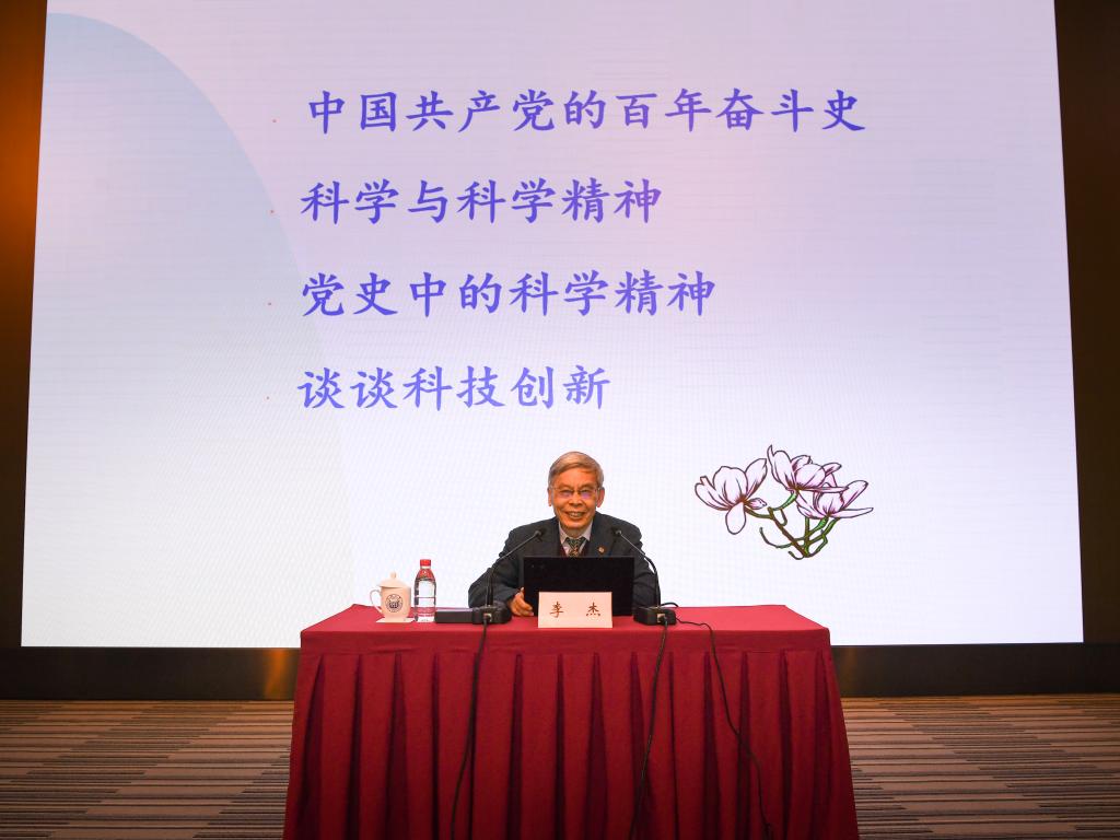 党史中蕴含哪些科学精神?李杰院士从“实事求是、创新精神、自我革命”三个具体方面作了阐述。他从“十月革命” 到“农村包围城市”、从“打土豪分田地” 到“减租减息”、从“反围剿” 到“湘江之战”等例子出发,阐明实事求是是马克思主义活的灵魂。100年来,党不断推进理论创新、实践创新、制度创新、文化创新,敢为天下先,走出了前人没有走出的路。李杰院士以“秋收起义”到“三湾改编”、从“绕圈圈”到“敌进我退”等“十六字方针”为例,阐述了党史中的创新精神;以从“八七会议”到“遵义会议”、从“大跃进”到“改革开放”等为例,阐明了勇于自我革命是中国共产党区别于其他政党的显著标志,自我革命精神是党永葆青春活力的强大支撑。