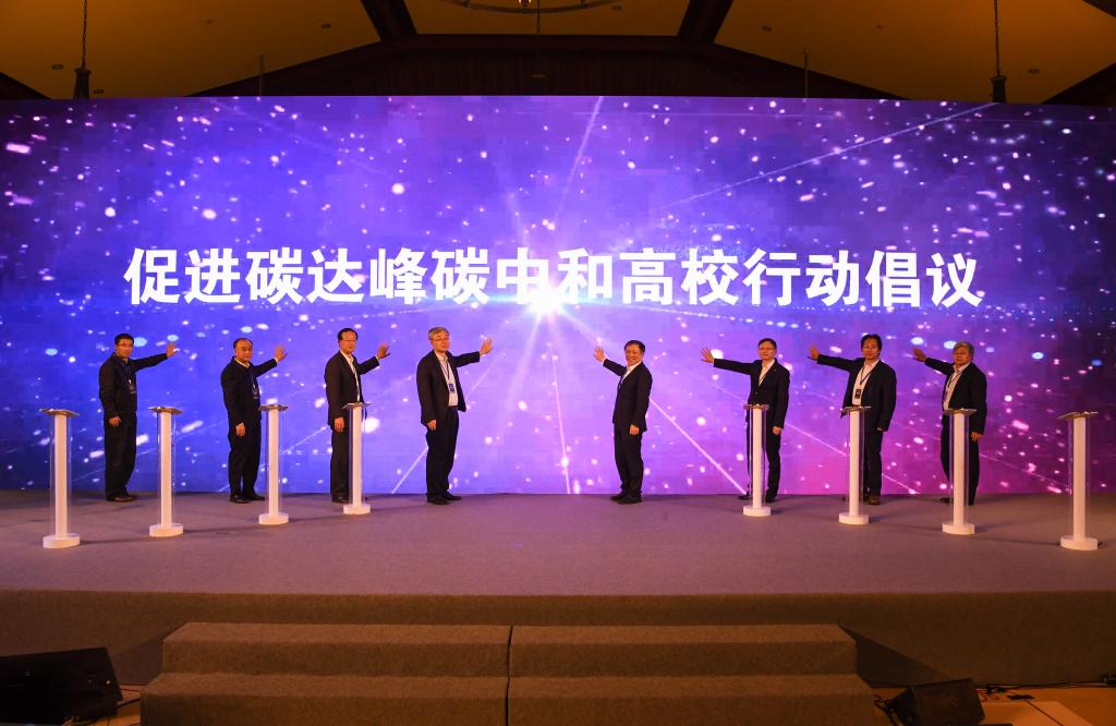 当天,联盟高校共同发布《促进碳达峰碳中和高校行动倡议》。《倡议》指出,在推进碳达峰、碳中和这场广泛而深刻的经济社会系统性变革中,高校承担着科学研究、人才培养、社会服务的职能,在促进我国绿色低碳转型发展的过程中责任重大,义不容辞。联盟面向全体高校发出如下倡议:一是号召师生学习零碳知识,树立绿色低碳新理念,加深师生对碳达峰、碳中和的了解;二是呼吁师生从身边做起,开展绿色低碳活动实践,鼓励大学生投身绿色校园建设;三是充分利用专业优势,解决各行业绿色低碳领域“卡脖子”问题,推动绿色低碳领域颠覆性技术创新;四是强化产学研合作,促进低碳技术推广应用,实现企业绿色低碳高质量发展;五是加强国际科技交流合作,融入全球绿色低碳创新网络,加强绿色低碳技术创新合作行动。“让我们齐心协力,共同担当,为我国如期实现碳达峰、碳中和目标作出高校应有的贡献!”