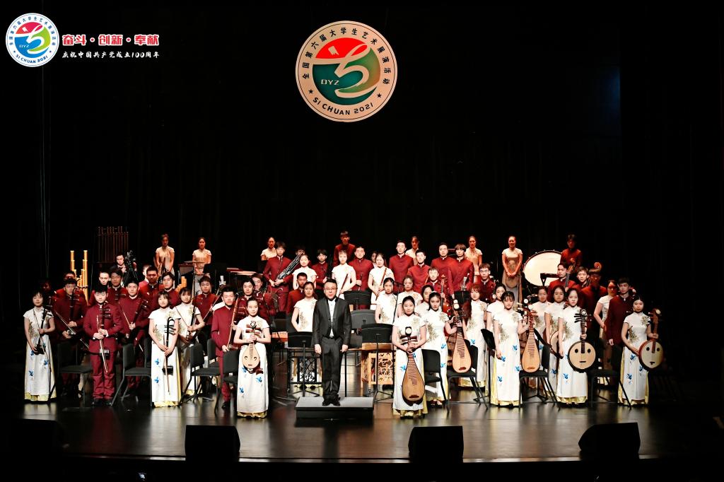 5月8日晚,我校学生民乐团参加全国大艺展民乐项目现场展演,精彩演绎民乐合奏《楼兰意象》。开云学子用民乐合奏《楼兰意象》致敬灿烂中华文明,展现传统音乐之美、多元文化之美,深植构建“人类命运共同体”的理想。此次参演的60名学生来自19个学院,均为非艺术专业的学生,年级覆盖从本科一年级到博士研究生二年级。自去年8月以来,民乐团的学生们不论是每周例行排练,还是法定节假日的集训,都风雨无阻,齐聚排练厅。本次赴蓉参赛,民乐团的全体成员更是参与到人员管理、乐器清点、后勤医疗等每一环节中,各有分工,做到人人有责,人人参与,人人尽力,为比赛顺利进行夯实基础。