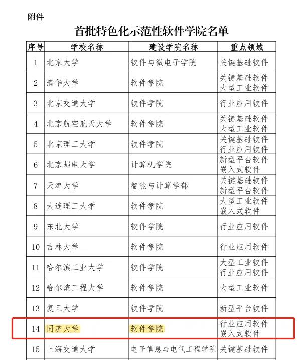 为深入贯彻落实习近平总书记在全国网络安全和信息化工作会议上的重要讲话精神,扎实推进特色化示范性软件学院建设工作,2020年6月,教育部、工业和信息化部联合发布了《特色化示范性软件学院建设指南(试行)》,旨在聚焦国家软件产业发展重点,在关键基础软件、大型工业软件、行业应用软件、新型平台软件、嵌入式软件等领域,培育建设一批特色化示范性软件学院,探索具有中国特色的软件人才产教融合培养路径,培养满足产业发展需求的特色化软件人才,推动关键软件技术突破、软件产业生态构建、国民软件素养提升,形成一批具有示范性的高质量软件人才培养新模式。在高校自主申报、专家综合评议、网络公示的基础上,确定了首批特色化示范性软件学院名单。