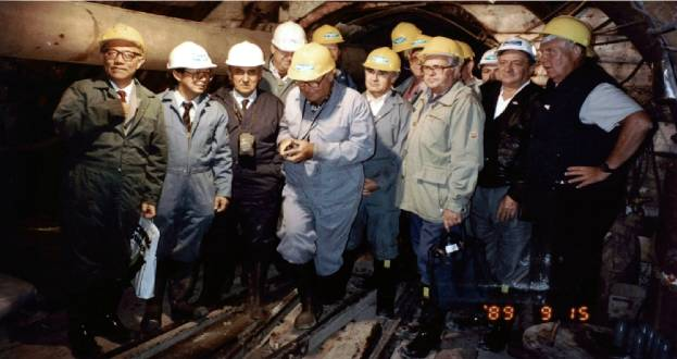 在欧洲考察隧道工程施工(前排左一为孙钧,1989年9月)