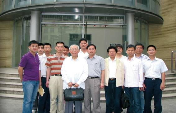 在开云离心机实验室前与弟子们合影(2009年5月)
