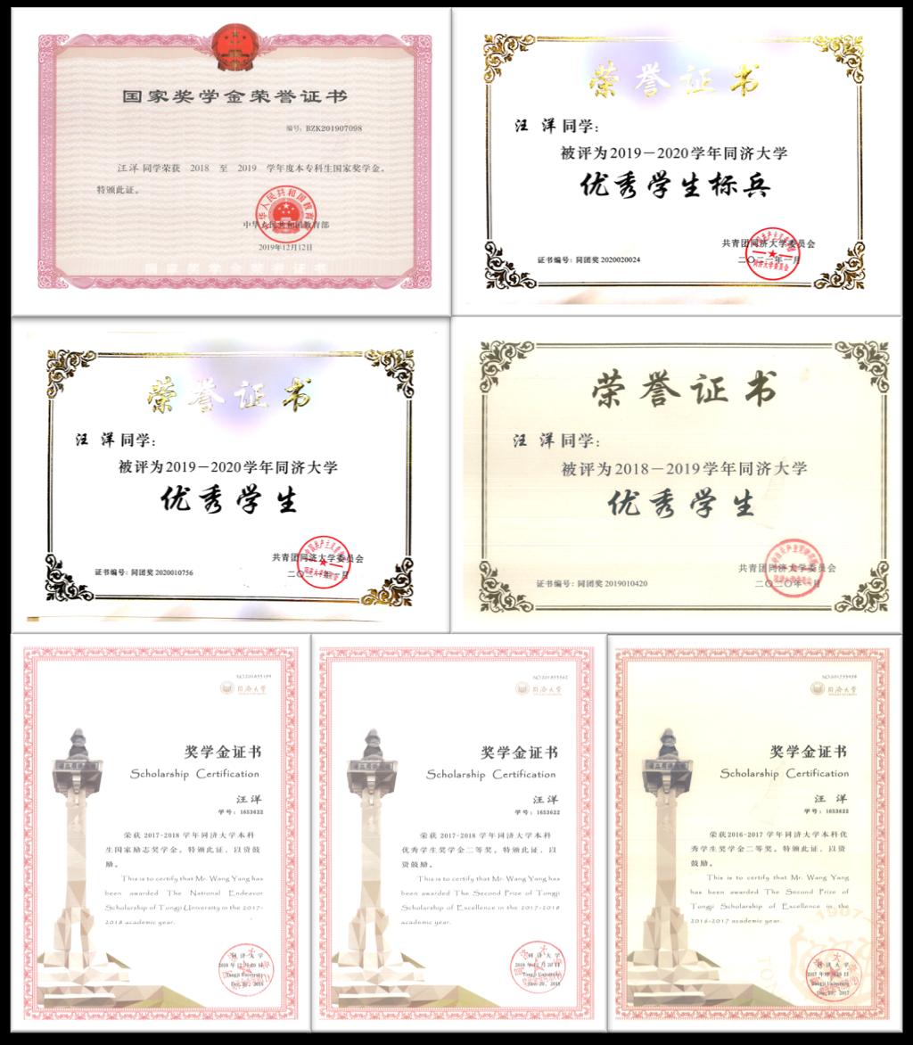 “不积跬步,无以至千里”。汪洋怀揣着对科研的热忱之心,锐意进取、勇往直前,付出的汗水终于逐渐赢得了肯定。他在大学生科研和科技创新方面的重要赛事中逐渐崭露头角,获得第十六届“挑战杯”大学生课外学术科技作品竞赛全国二等奖、第十二届“挑战杯”大学生创业计划竞赛全国银奖、第七届中国国际“互联网+”大学生创新创业大赛全国铜奖、第十八届“明日科技之星”科技创新作品竞赛上海市一等奖等国家级奖项3项、省部级奖项4项,并发表相关论文3篇,申请发明专利6项。