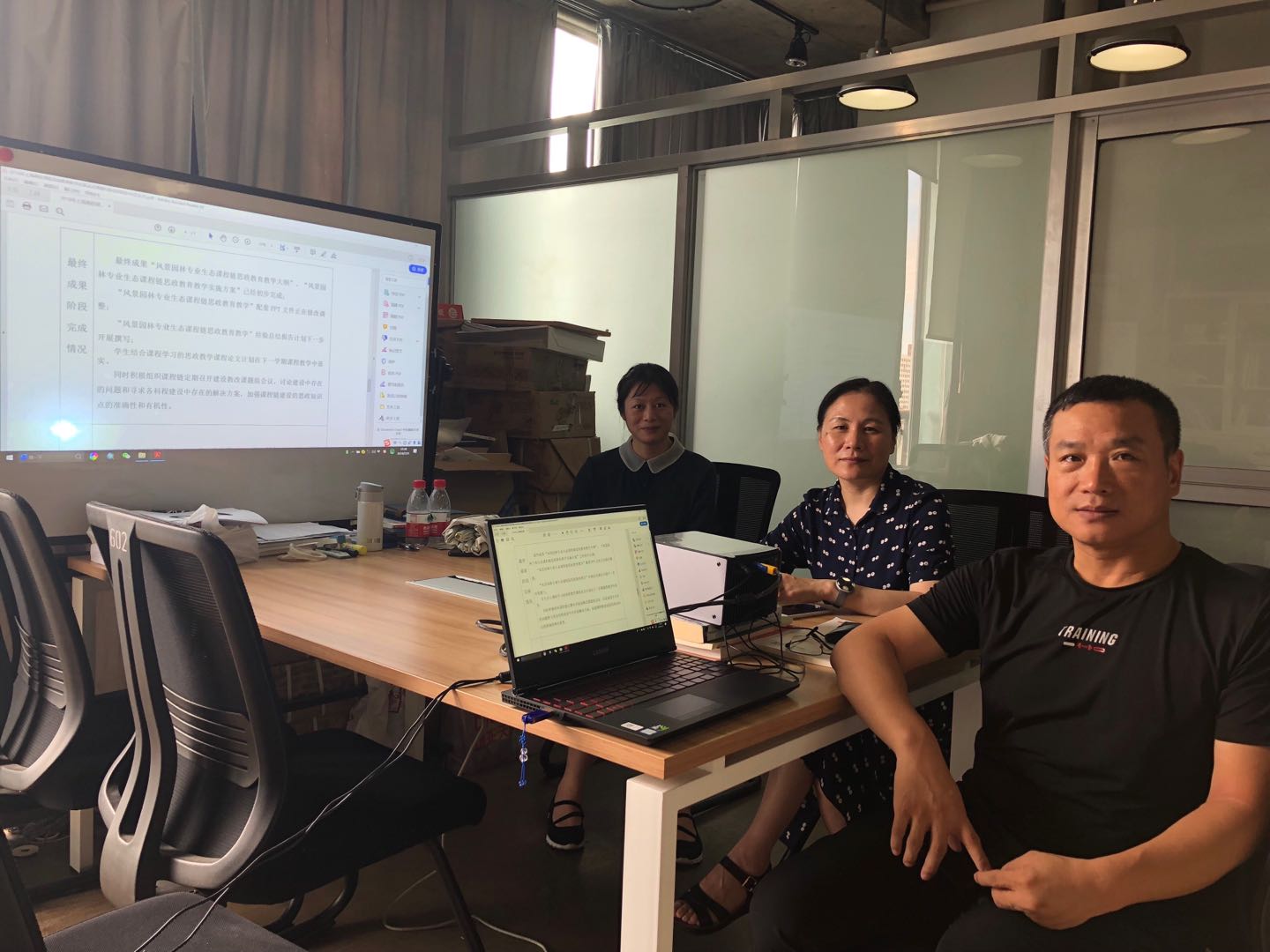 课程链团队成员:王云才(右一)、刘颂(中)、陈蔚镇(左一)三位教授在研讨会上合影