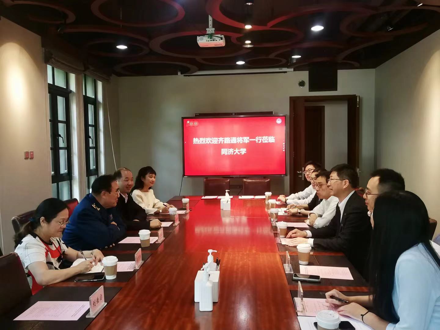 报告会前,校党委副书记彭震伟与齐路通少将一行举行了座谈。双方围绕党史学习教育、校外专家进校园、我校大学生为红色文化展馆开展志愿讲解服务、用好红色资源并做好红色文化的国际传播等方面展开了交流讨论。