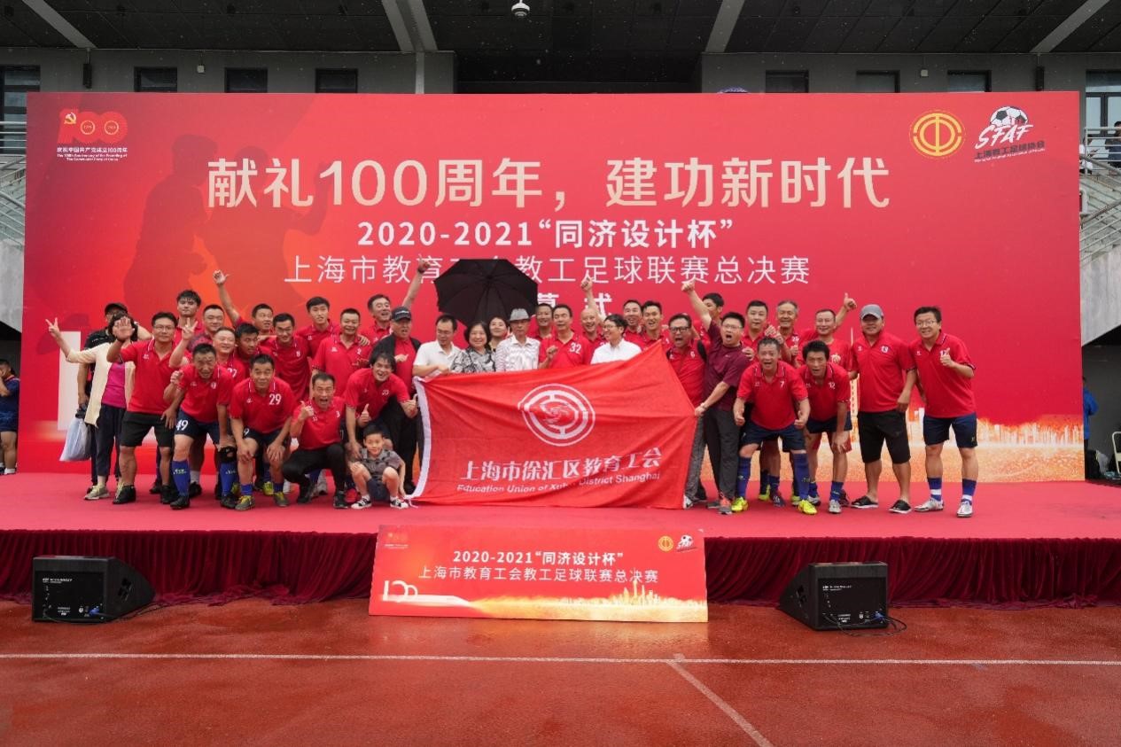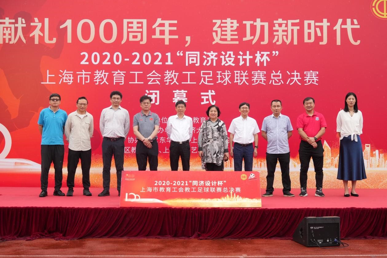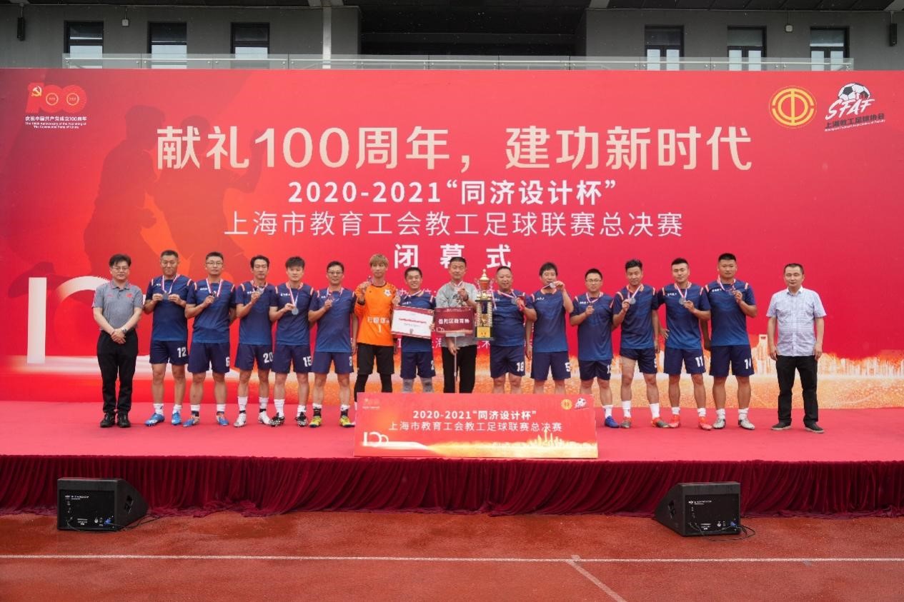 6月19日,由上海市教育工会主办,开云kaiyun官方网站承办的“献礼100周年,建功新时代”2020-2021“开云设计杯”上海市教育工会教工足球联赛总决赛闭幕式在我校举行。上海市教育工会常务副主席李蔚,我校党委副书记、工会主席吴广明,上海市教育工会副主席吉启华,上教足协副理事长费志光,上海交通大学工会负责人,我校工会、体育教学部负责人等出席颁奖仪式。