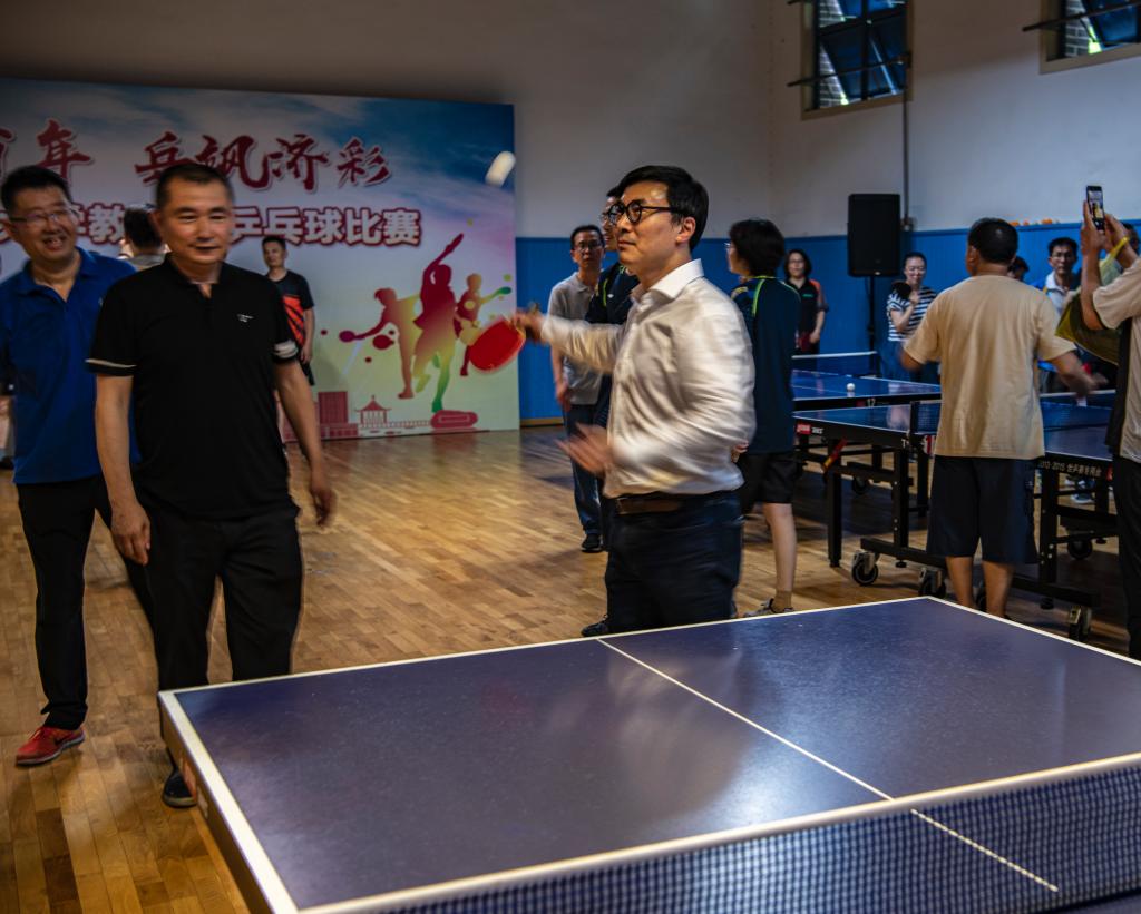 娄永琪在致辞中对校工会和体育教学部为学校教职工提供体育锻炼的平台和服务给予肯定,鼓励大家通过比赛增进交流、增强凝聚力,推动学校乒乓球运动健康可持续发展。
