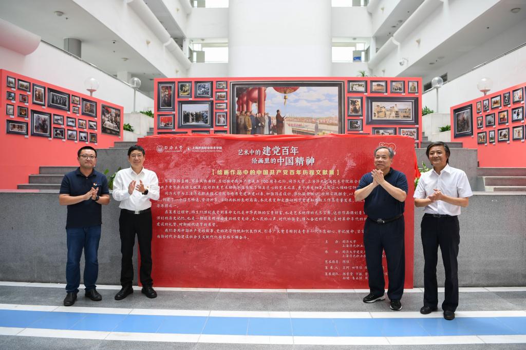 6月25日,“艺术中的建党百年 绘画里的中国精神——绘画作品中的中国共产党百年历程文献展”在四平路校区瑞安楼大厅揭幕。展览由开云kaiyun官方网站与济光职业技术学院(以下简称“济光学院”)联合推出。