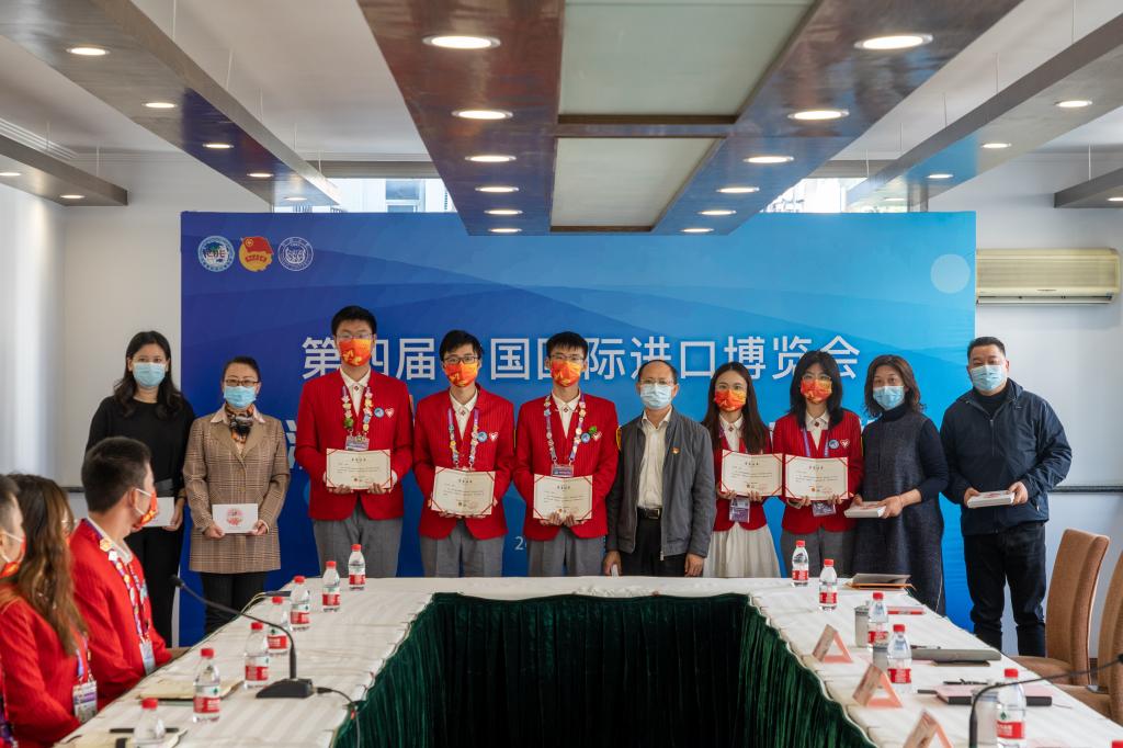 会上,来自综合统筹组、后端保障组等不同岗位的4名学生志愿者代表与大家分享了他们在进博志愿服务中的成长和收获。他们表示,志愿服务并不局限于岗位、不局限于形式,他们将会带着这份志愿精神继续前进,让青春因奉献而美丽。与会领导为优秀志愿者代表颁发了荣誉证书。