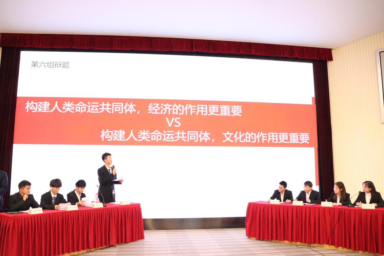 伴随着现场热烈掌声,决赛迎来最终环节——小组辩论。辩论赛分为立论、攻辩和总结三个阶段,其中不乏如“文化自信更多来自对传统文化的积淀传承还是创新发展”“青年人奋斗的价值体现在过程中还是结果中”“构建人类命运共同体,经济和文化的作用哪个更重要”等结合时代热点的话题。双方选手围绕辩题,你来我往,思路清晰,引经据典,字字珠玑,立足各自立场展开深层次辩论。最终,第二组、第六组、第九组和第十二组学生获得了本次比赛的一等奖。