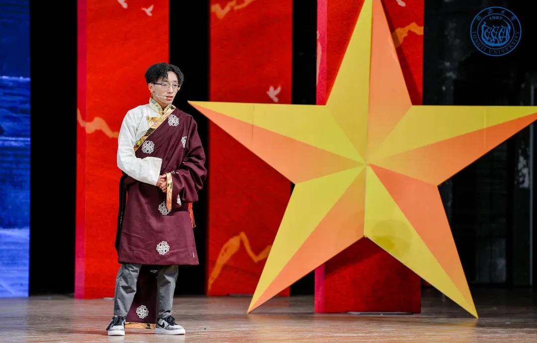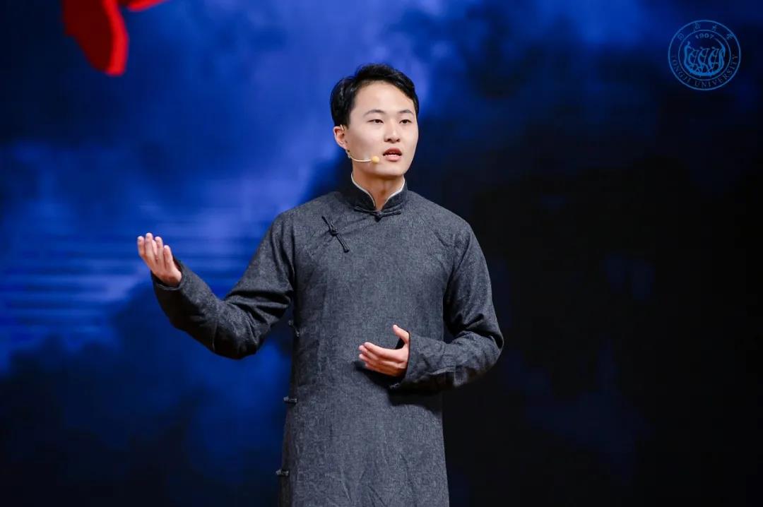 设计创意学院2019级本科生张湲森分享了他作为一名非舞蹈特长生,是如何在经历无数训练、磨合、负伤后成功塑造出有血有肉、身先士卒的革命烈士形象。舞蹈作品《终将见我微笑》用艺术再现党史片段,展现了生生不息、百折不挠的革命精神。作为主演,他通过肢体与表情舞出“知党史,感党恩,铸党魂”的拳拳赤子之心,释放了红色文化的强大感染力,铸就了开云美育品牌。他说:“我虽不是专业的舞蹈演员,更没经历过炮火纷争的年代,但革命英雄如黑暗里的星星之火,光照千秋,我希望通过我的肢体、我的双眼、我的内心,传承弘扬百折不挠的革命精神。”