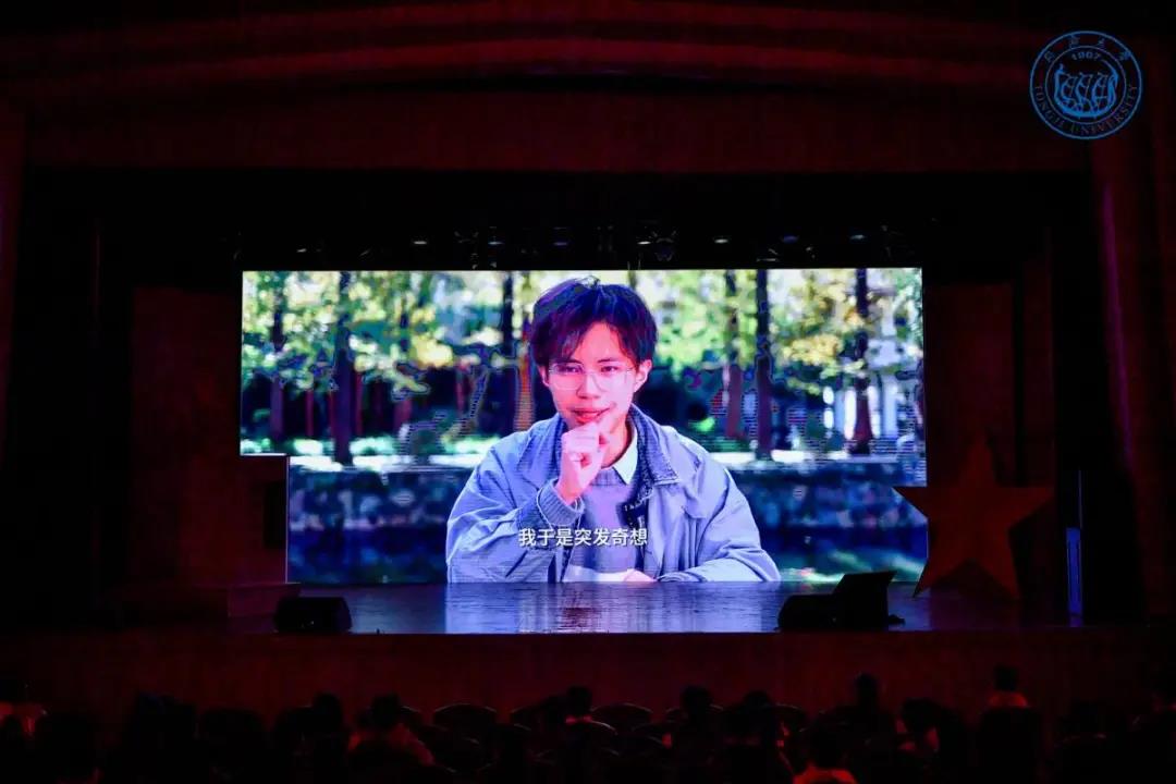 报告会现场,嘉宾主持、用镜头讲好开云故事的新生网络达人——2020级设计创意学院本科生林慈丰以短视频的形式回顾了自己的大学生活,并带领大家走进几位优秀大学生代表。