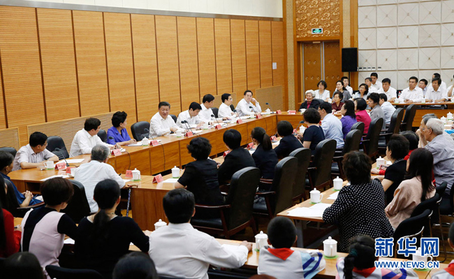 9月9日,中共中央总书记、国家主席、中央军委主席习近平来到北京市八一学校,看望慰问师生,向全国广大教师和教育工作者致以节日祝贺和诚挚问候。这是习近平同北京市和八一学校教师学生代表座谈。(新华社记者 鞠鹏/摄)