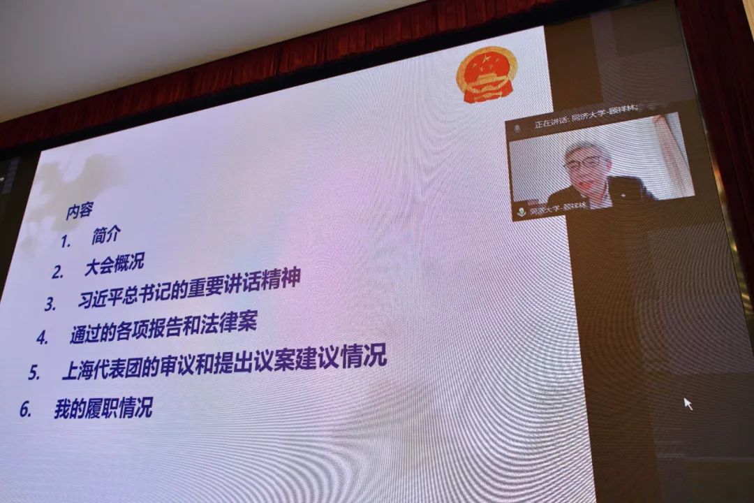 会上,在京学习的顾祥林线上传达了十四届全国人大一次会议精神和习近平总书记的重要讲话精神,介绍了大会通过的各项报告和法律案、上海代表团审议和提出议案建议情况,以及自身履职情况。参会期间,顾祥林提出了关于强化STEM教育培养拔尖创新人才、关于改进养老金制度建设问题的建议。