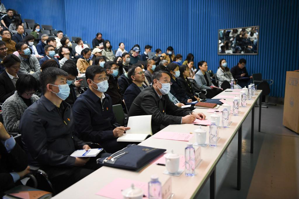 4月25日下午,建筑与城市规划学院领导班子在钟庭报告厅开展读书班集体学习,中央第56指导组组长张炜和指导组全体成员出席并指导。