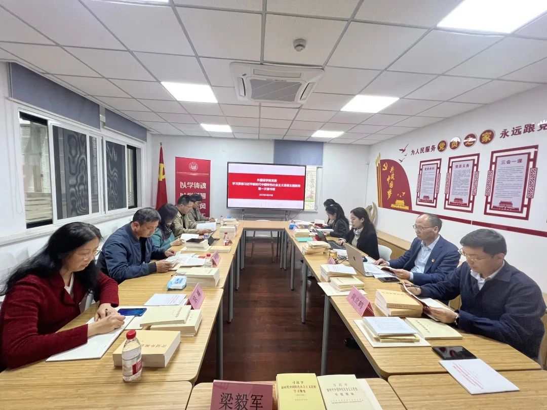 红底白字的主题教育展板,整齐摆放的党章、党的二十大报告、《习近平著作选读》等学习材料……4月23日下午,同文楼会议室里,外国语学院领导班子成员围绕党章开展专题学习,结合学科建设、人才培养等畅谈职责使命。院长吴赟说:“作为一名干部,我们要做到理论先行,并让理论服务于人才培养,着力提升外语学科服务国家战略的能力。”