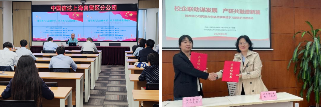 校内外携手,推进横向联动。各基层支部纷纷走出校门,结合专业特点与企业、科研院所等开展联学联建。经济与管理学院经济与金融系党支部走进中国信达资产管理股份有限公司上海自贸试验区分公司,开展“共建促交流,协同育人才”的主题党日活动。轨交院与磁浮中心教工第二党支部与上海轨道交通技术研究中心第一党支部联合开展了主题为“校企联动谋发展、产研共融谱新篇”的联组学习暨签约共建活动,推进了校企联学共研与横向联动。