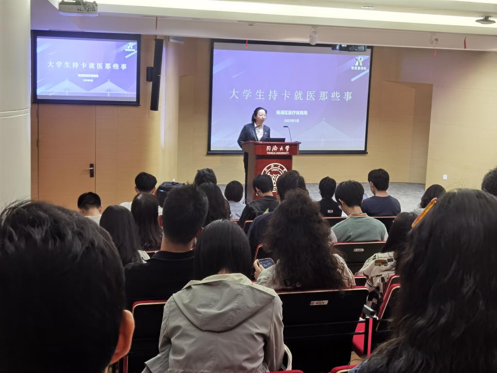 杨浦区医保局彩虹宣讲队董玥老师阐述了大学生参加城镇居民医疗保险的必要性和优越性,从大学生医保背景意义,如何持卡、缴费、办册以及如何就医、报销等方面详细讲解了大学生医保相关政策,并介绍了港澳台学生的办卡流程。(蒋婷婷)