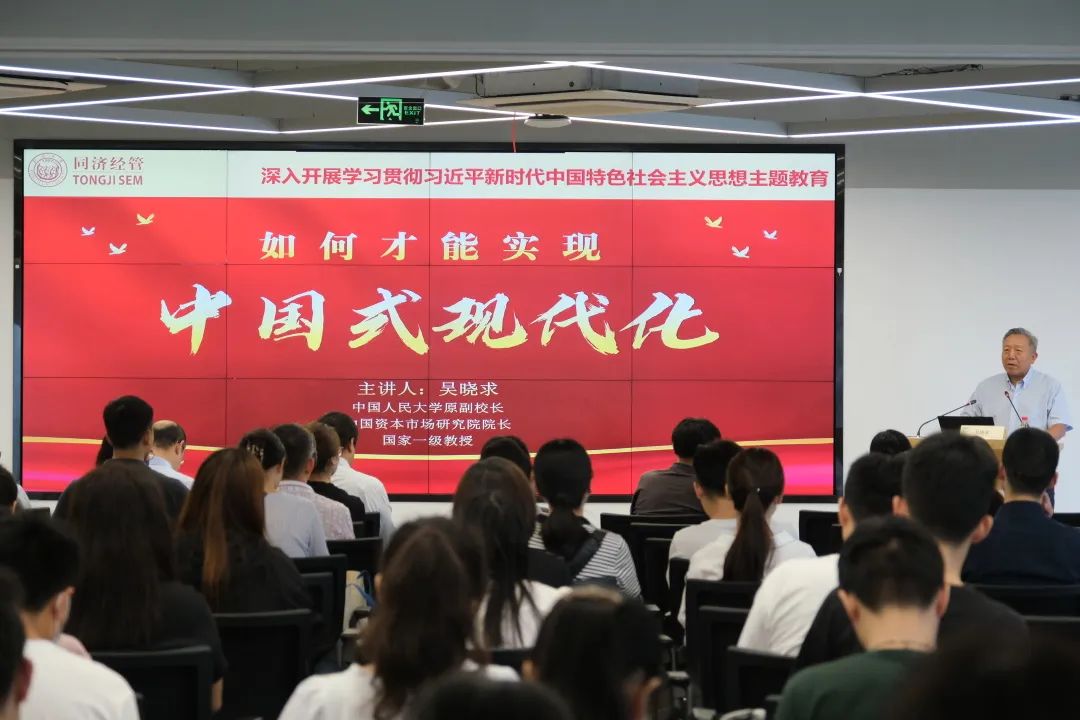 会后,吴晓求作了题为《如何才能实现中国式现代化》的主题辅导报告。学院班子成员、师生党支部书记、学生代表近80人聆听了讲座,就中国式现代化这一议题开展学习。