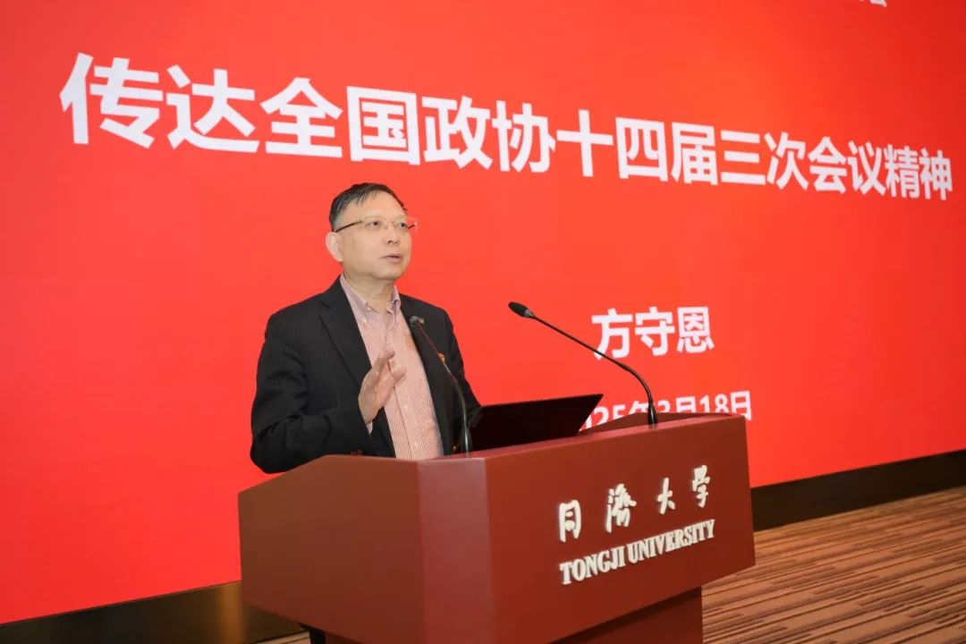 方守恩传达了全国政协十四届三次会议精神和习近平总书记在民盟民进教育界联组会上的重要讲话精神,介绍了联组会上6位委员围绕不同话题的发言和总书记的亲切回应,以及自身履职情况。参会期间,方守恩提出了关于“推动校企合作,加强人工智能拔尖创新人才培养”等提案。