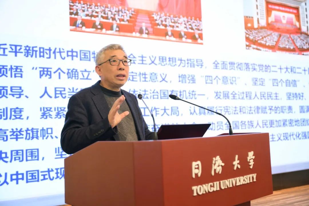 方守恩主持会议,校领导班子成员、全体中层干部和学校各民主党派主委参加学习。主会场设在四平路校区,在嘉定校区设置了分会场。