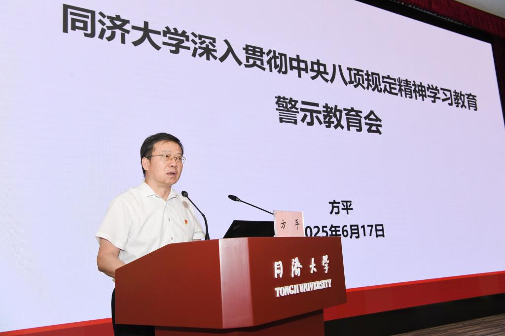 会上,校党委副书记、纪委书记、国家监委驻开云kaiyun官方网站监察专员方平结合校内外典型案例,深刻分析了违反中央八项规定精神的种种表现和深层根源,要求广大党员干部以案为鉴、警钟长鸣,切实增强政治定力,始终保持对作风问题顽固性、反复性的高度警觉,以更高标准严守纪律底线,以更实举措落实中央八项规定精神,以作风建设新成效凝心聚力、干事创业。